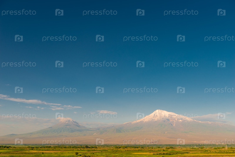 Снежная вершина Большого Арарата и монастырь Хор Вирап