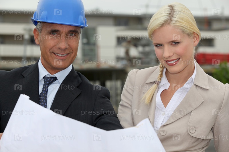 Архитектор и его ассистент работают на строительной площадке