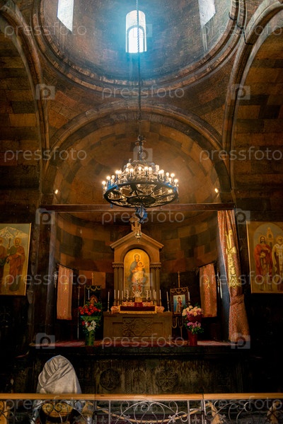 Интерьер храма монастыря Хор Вирап, вид на алтарь храма, Армянская церковь