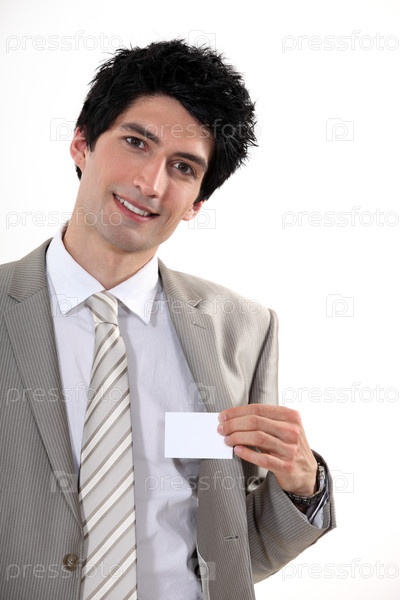 Бизнесмен показывает визитку