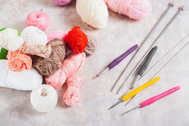 Пряжа и инструменты для уютного домашнего вязального хобби на столе