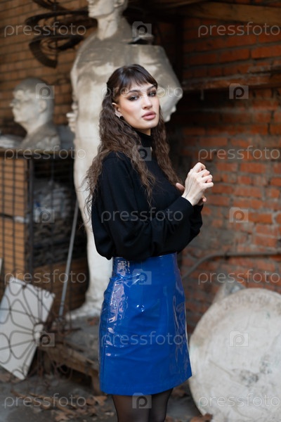 Молодая красивая женщина позирует в черном свитере