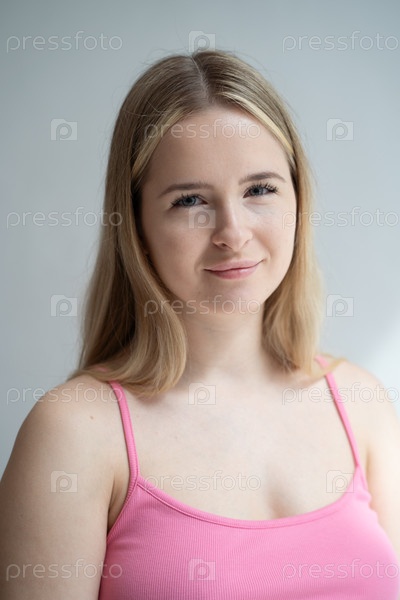 Портрет молодой красивой женщины с прямыми белыми волосами в студии