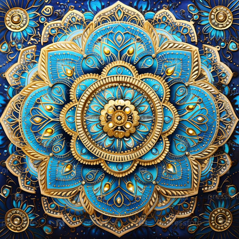 Абстрактная иллюстрация замысловатого дизайна мандалы, с символизмом и деталями, цветочными узорами