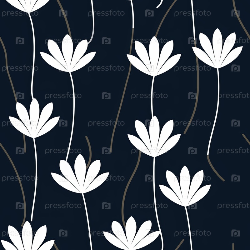 Минималистский и абстрактный бесшовный узор с простыми черно-белыми цветочными силуэтами для создания элегантного и современного дизайна