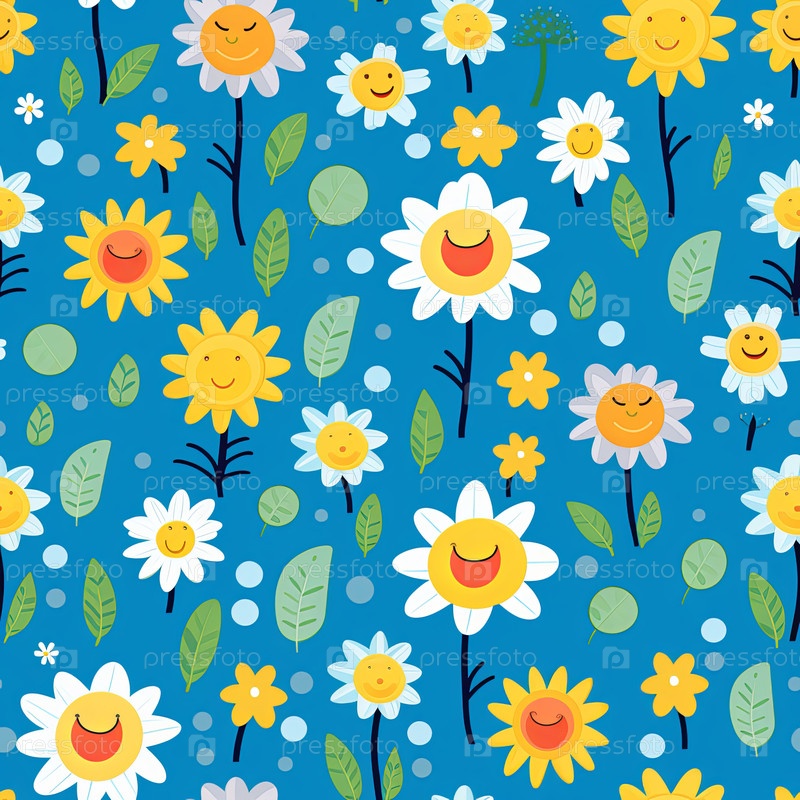 Игривый бесшовный узор с смесью маргариток, подсолнухов и нарциссов