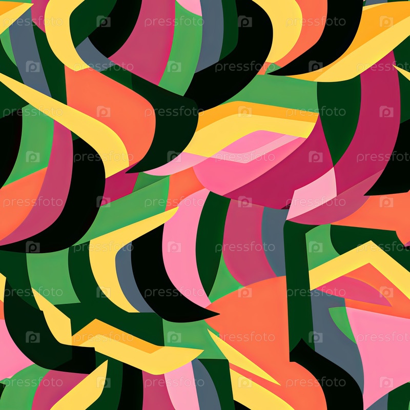 Абстрактный и визуально интригующий бесшовный рисунок с геометрическими изображениями овощей и фруктов, создающий современный и художественный дизайн