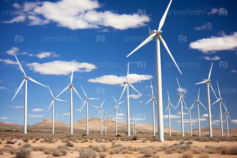 Современная ветряная турбина, использующая энергию ветра, в пустынной местности, возобновляемые источники энергии