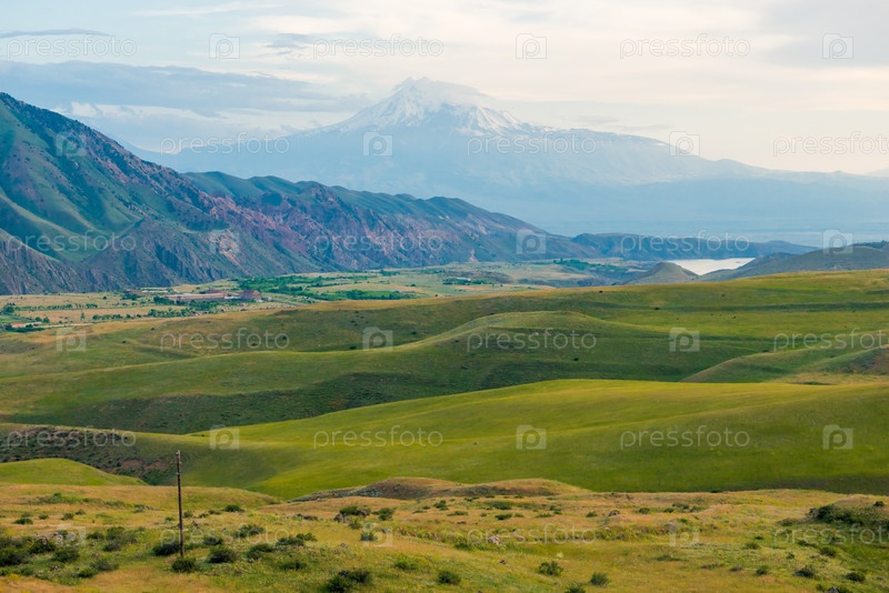 Живописный пейзаж Армении - гора Большой Арарат с заснеженной вершиной ранним утром