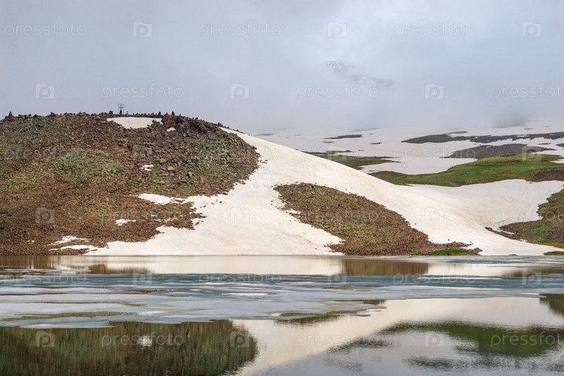 Красивое альпийское озеро Кари в горах Армении летом