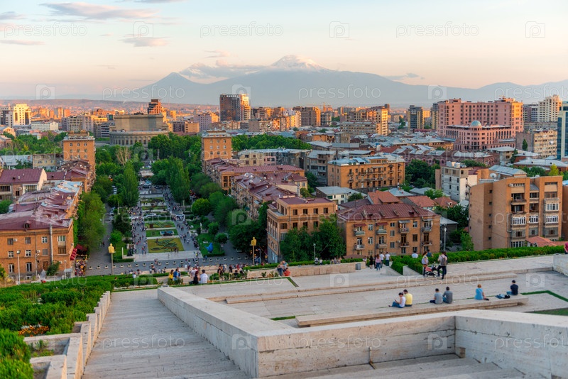 Прекрасный вид на город Ереван и гору Арарат из Каскада, Армения