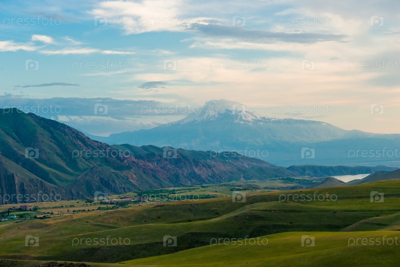 Вечерний пейзаж Армении - гора Большой Арарат со снежной вершиной