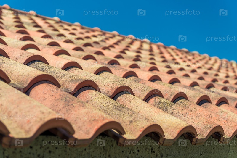 Крупный план красной плитки, покрывающей крышу части дома
