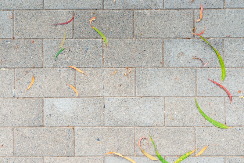 Серая плитка, покрытая опавшими листьями фон крупным планом