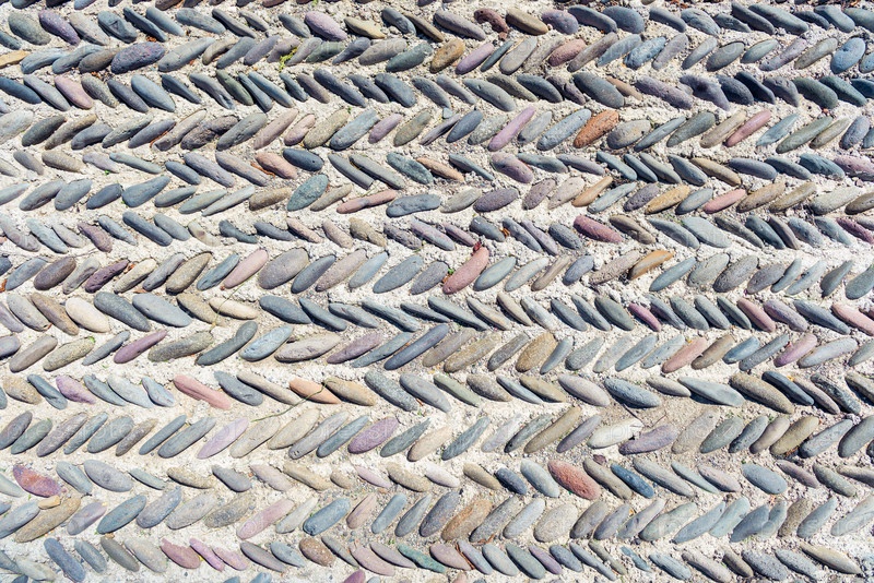 Пешеходная дорога, облицованная овальным гладким камнем галька крупным планом