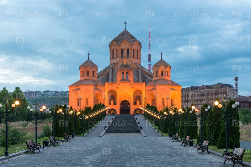 Православная церковь Святого Григория вечером, Ереван, Армения