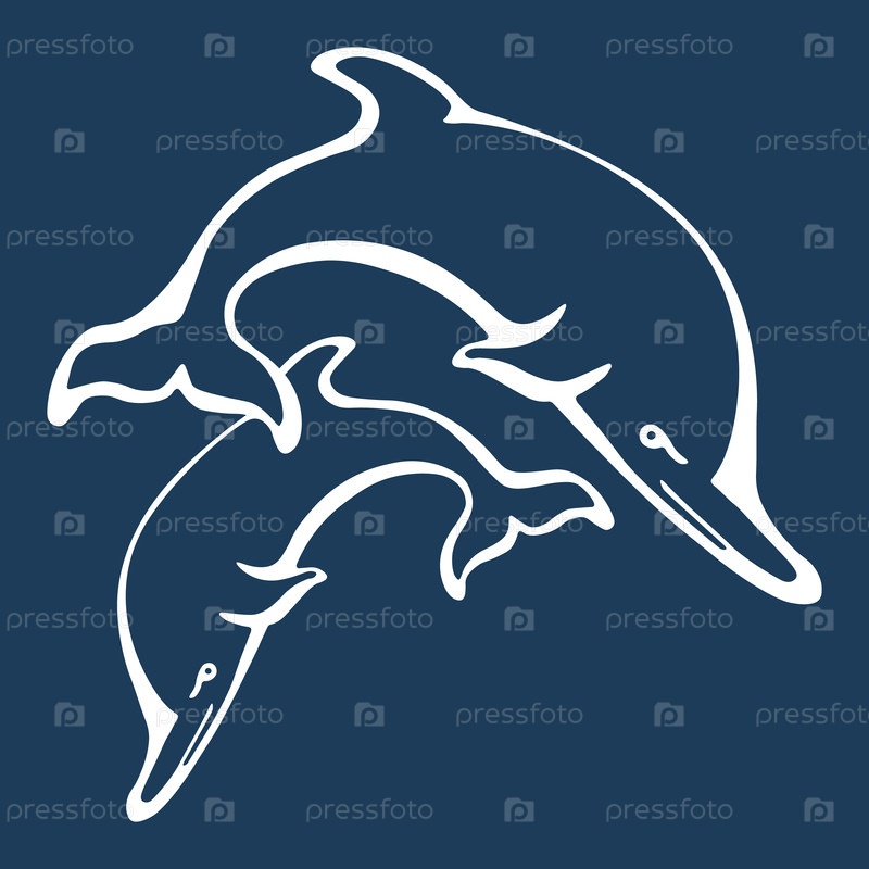 Векторный рисунок с дельфинами на синем фоне