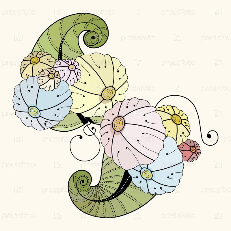 Иллюстрация вектора. Нарисованный вручную натуральный орнамент с роскошными цветами, изолированными на белом фоне в стиле дудла