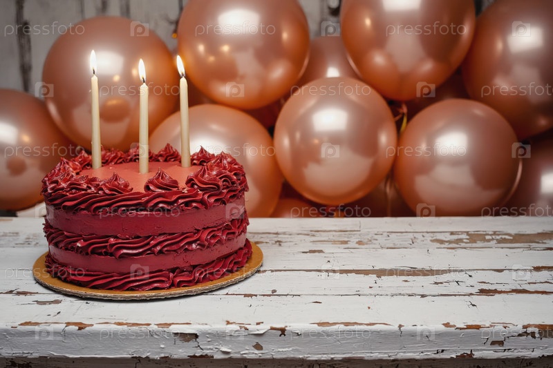 Генеративный праздничный торт для счастливого дня рождения с горящими свечами, карта с копирующим пространством