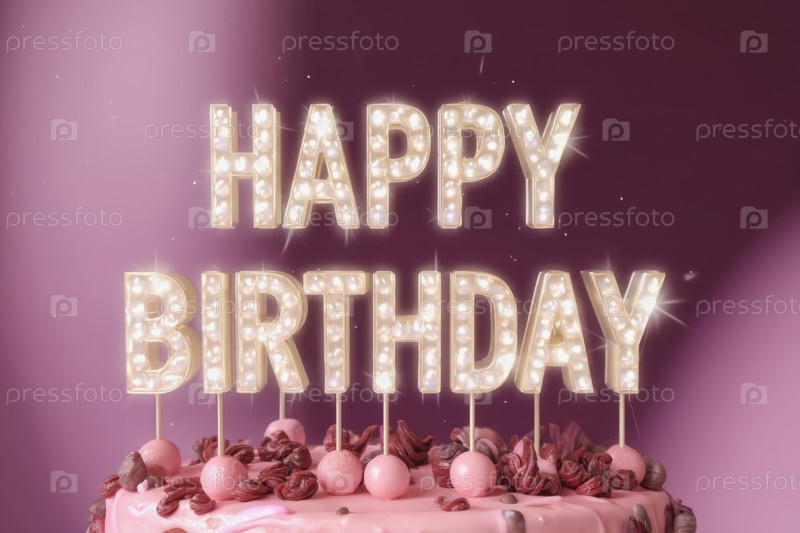 Генеративный праздничный торт для счастливого дня рождения с горящими свечами, карта с копирующим пространством