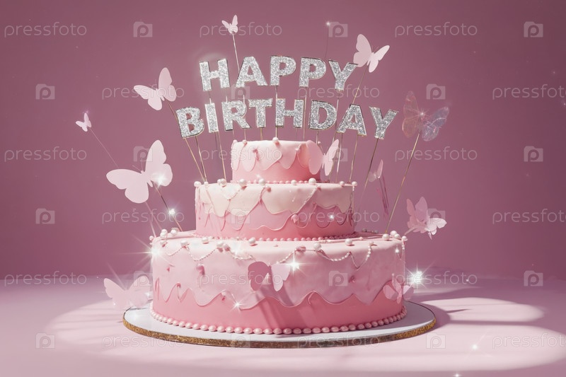 Генеративный праздничный торт для счастливого дня рождения с горящими свечами, карта с копирующим пространством