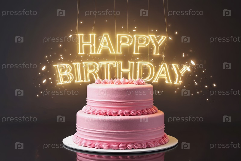 Генеративный праздничный торт для счастливого дня рождения с горящими свечами, карта с копирующим пространством