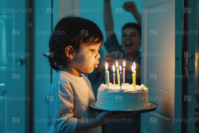 Маленькая девочка, задувающая свечи на торте, празднование дня рождения детей