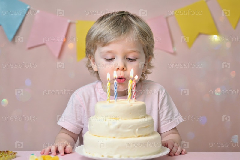 Маленькая девочка, задувающая свечи на торте, празднование дня рождения детей