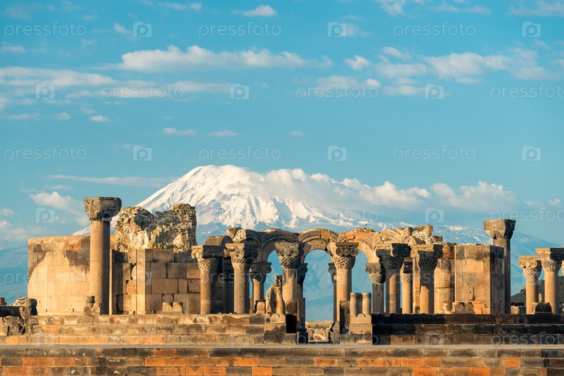 Храм Звартноц на фоне горы Арарат - достопримечательность Армении