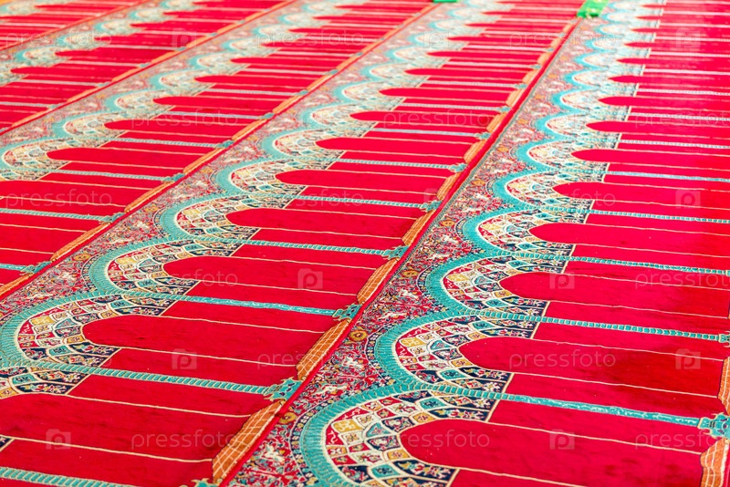 Красная дорожка на полу в мусульманской церкви для верующих