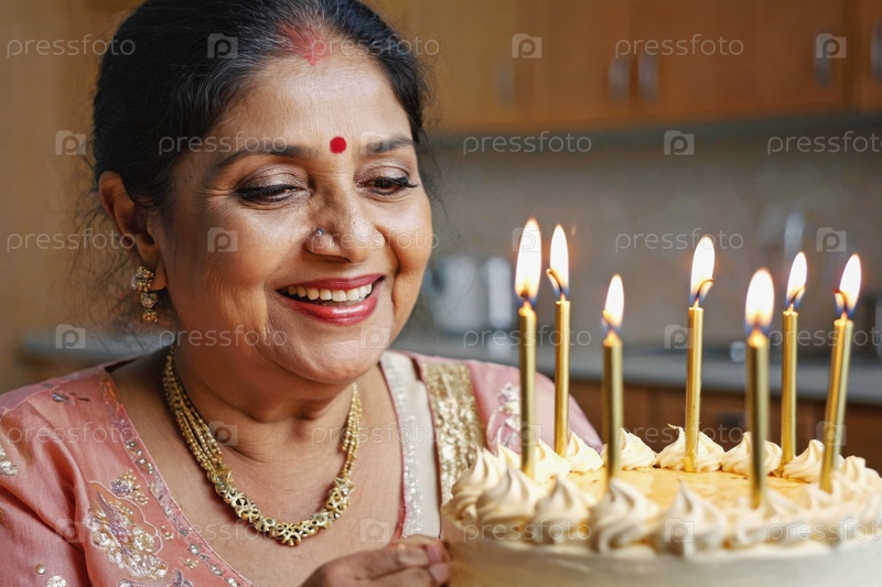 Взрослая женщина задувает свечи на торте, празднование дня рождения