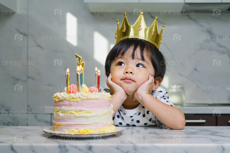 Маленькая девочка, задувающая свечи на торте, празднование дня рождения детей