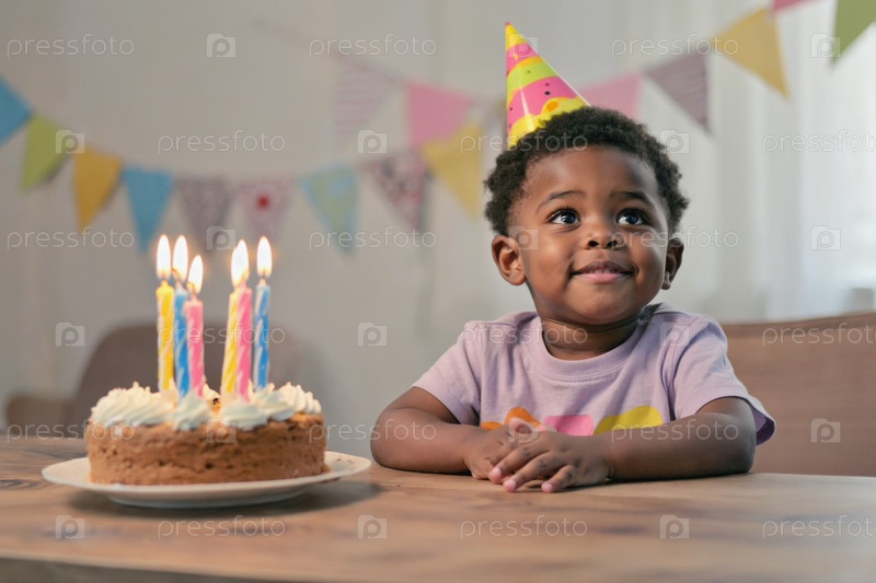 Маленький мальчик задувает свечи на торте, празднование дня рождения детей