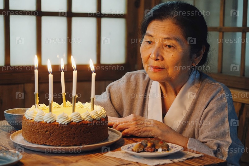 Взрослая женщина задувает свечи на торте, празднование дня рождения