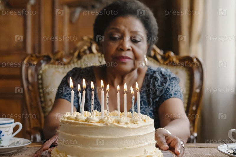 Взрослая женщина задувает свечи на торте, празднование дня рождения