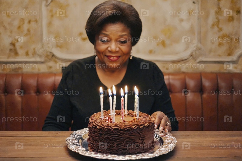Взрослая женщина задувает свечи на торте, празднование дня рождения