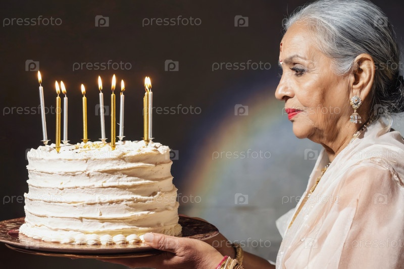 Взрослая женщина задувает свечи на торте, празднование дня рождения
