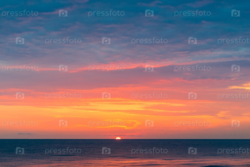 Красивый красный закат на морском пейзаже