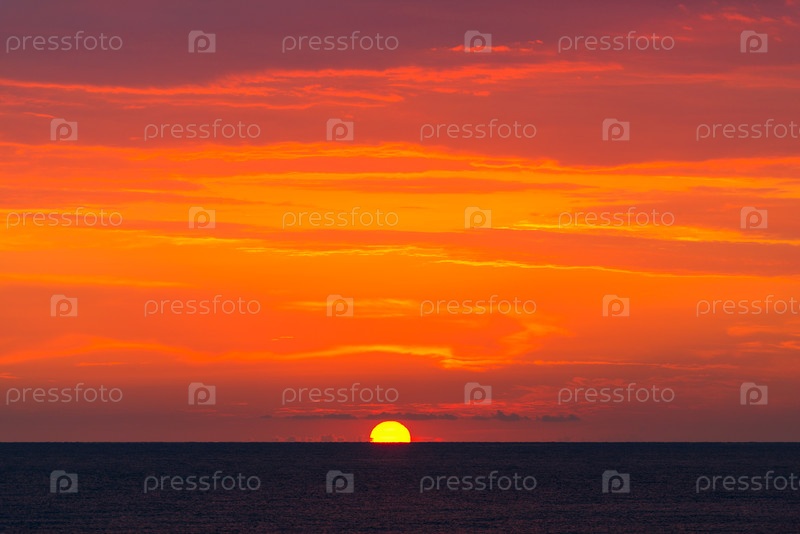 Красивый красный закат на морском пейзаже