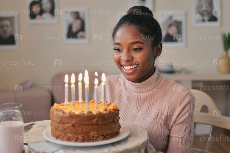 Генеративная молодая женщина задувает свечи на торте и празднует день рождения