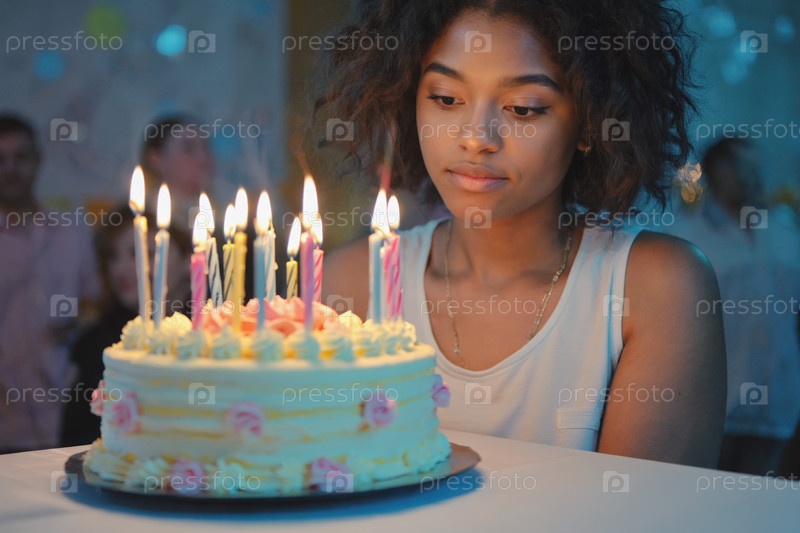 Генеративная молодая женщина задувает свечи на торте и празднует день рождения