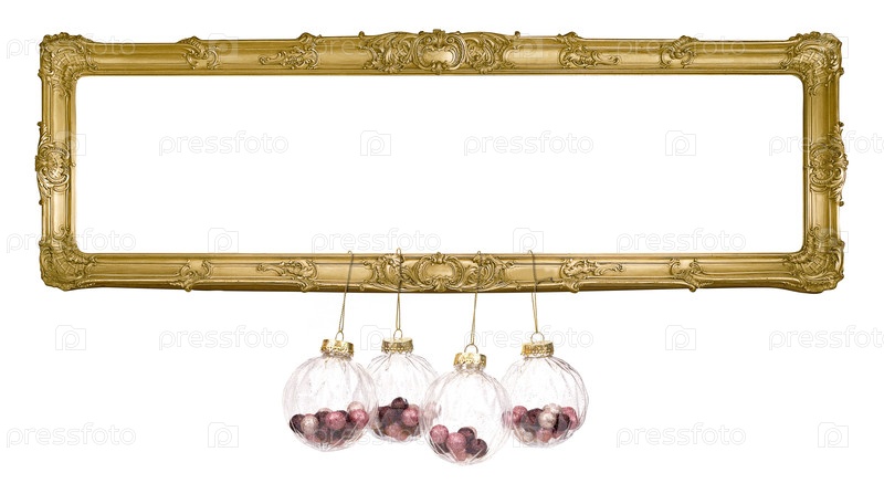 Панорамный золотой каркас для картин, зеркал или фото изолирован на белом фоне. Элемент дизайна с обрезкой пути