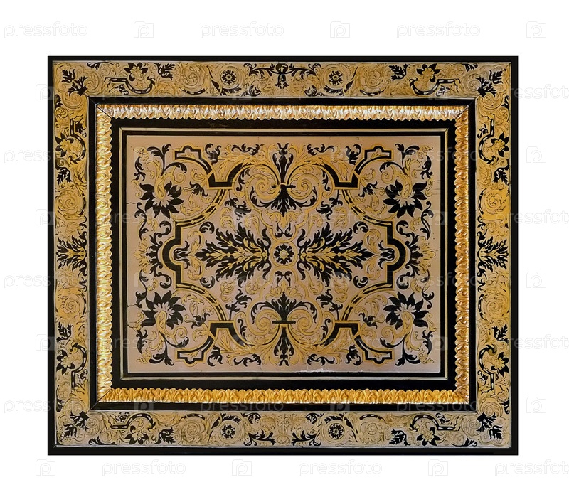 Золотой французский стол 18 века инкрустированный. Изолированный фон