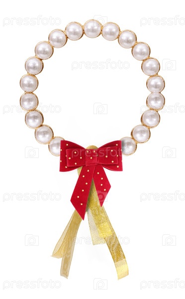 Золотая рамка с жемчугом для картин, зеркал или фото изолирована на белом фоне. Элемент дизайна с обрезкой пути
