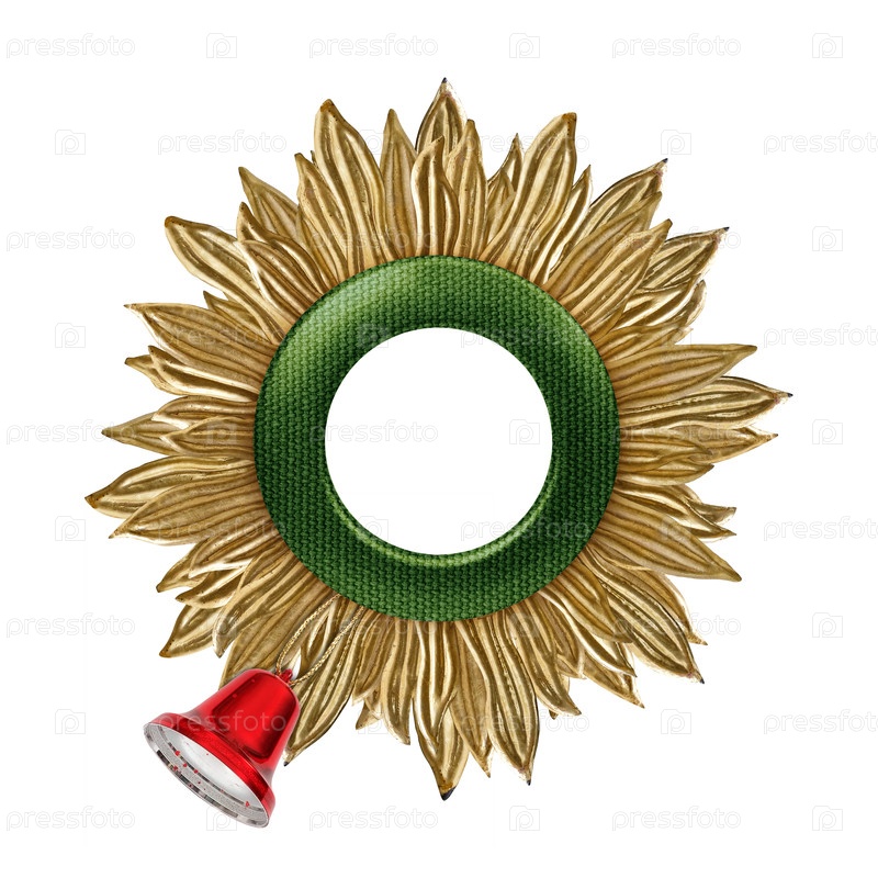 Золотая солнечная рама для картин, зеркал или фотографий, изолированных на белом фоне. Элемент дизайна с обрезкой пути