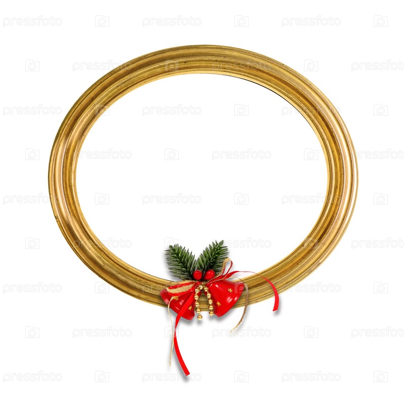 Золотая рама с рождественскими декоративными колоколами изолирована на белом фоне