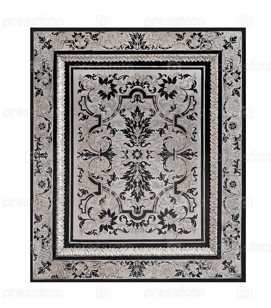 Серебряный французский стол 18 века инкрустированный. Изолированный фон