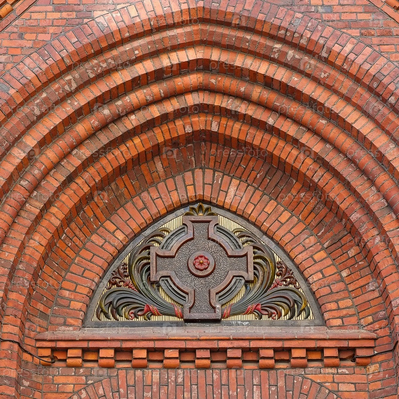 Изолированный декор с крестом из старого кирпича лютеранской церкви