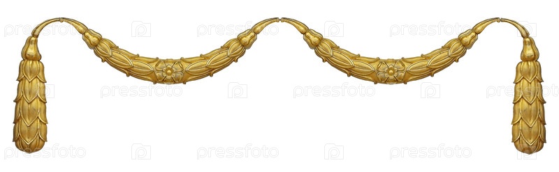 Золотые цветочные гирлянды изолированы на белом фоне. Элемент дизайна с обрезкой пути