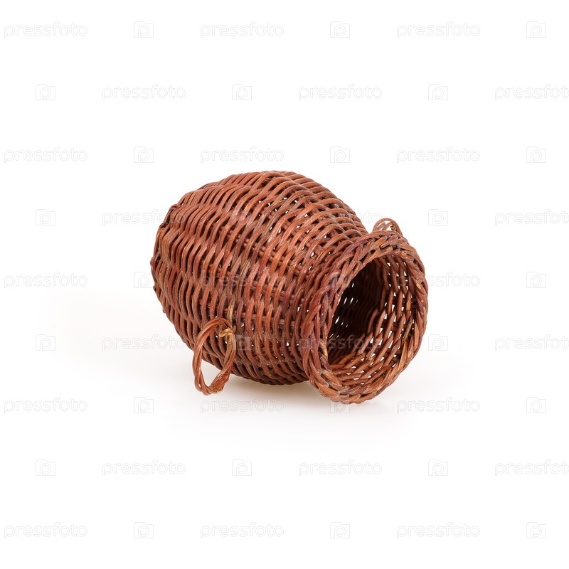 Ручная плетеная корзина изолирована на белом фоне